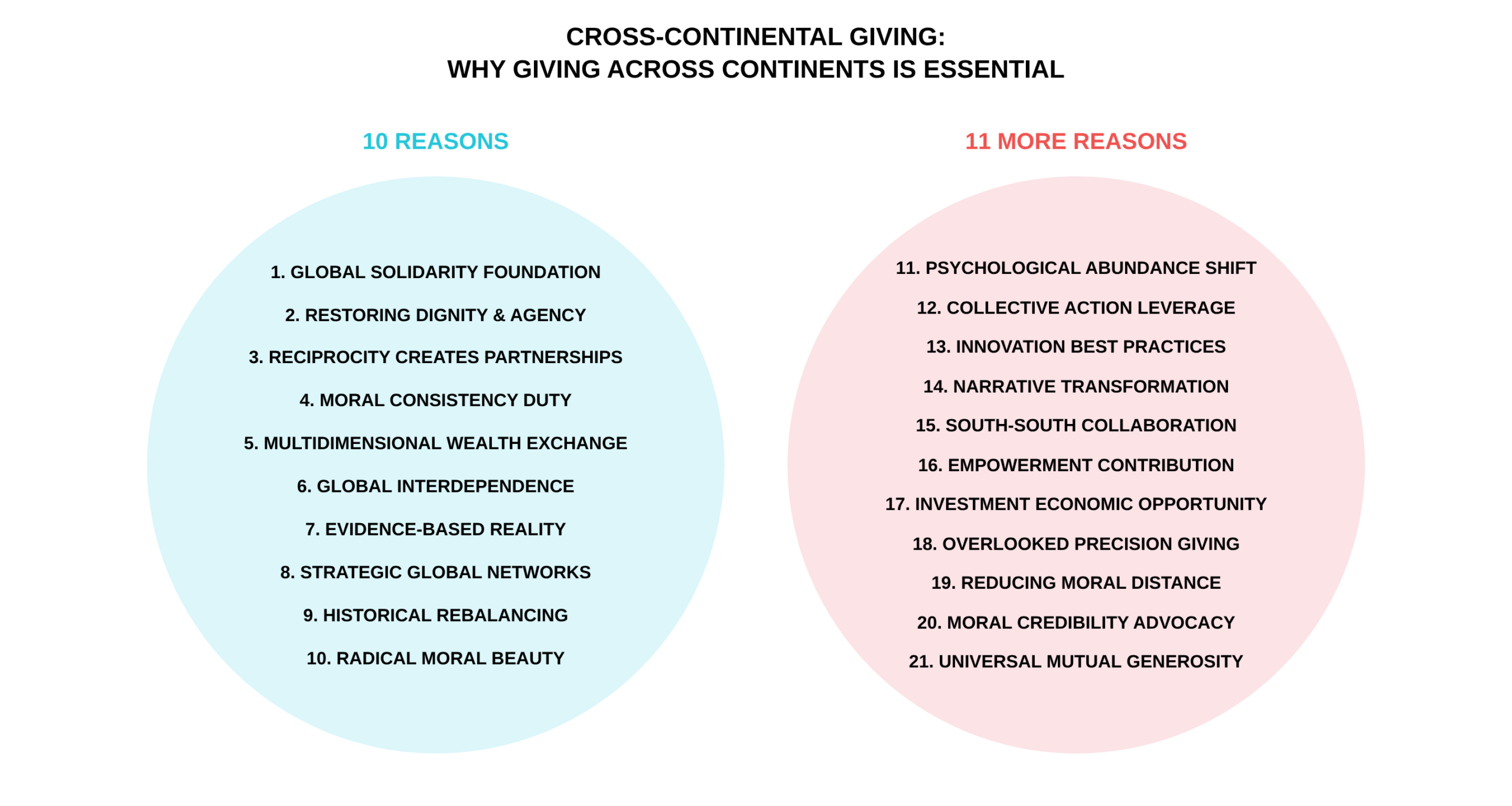 Equity Giving—dedicating at least 1% of resources to the world’s poorest 10%—is an investment in collective safety, prosperity, and resilience. The twenty-one reasons demonstrate that this commitment is not just philanthropy, but smart policy: the highest return on investment, a stabilizer of markets and democracies, a preemptive force against future crises, and a builder of reputational and long-term institutional value. As risks and opportunities cross continents and eras, targeting our giving at the hardest margins is both the most efficient and most just use of global resources. For policy makers, the 1% giving transforms generosity from charity into strategy—and from strategy into legacy.